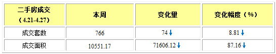 4.21-4.27:本周二手房成交量较上周相比,下降8.8%左右。纵观4月,二手房市场似乎一直不理想,但这对有刚需要求的购房者来说,无疑是大快人心的。