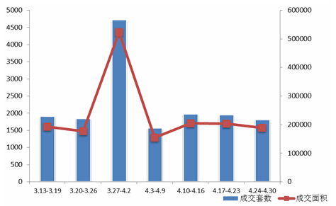 2017.4.24-2017.4.30周二手房成交量1434套,较上周下降69套,降幅4.59%;成交面积142086.78平方米,较上周环比下降12.02%。本周苏州二手房市场成交量呈现下降趋势,其中,高新区和吴江区成交量