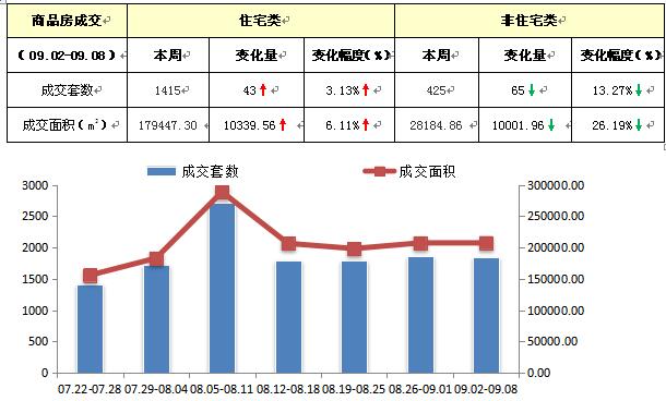 本周(09.02-09.08)共6个项目取得预售许可证,新增预售1564套,其中住宅1555套,非住宅9套,其它0套,新增预售面积共179767.12平方米,住宅179175.98平方米,非住宅591.14平方米,其它0平方米。