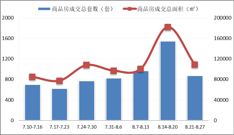 2023.8.21-8.27周苏州市二手房共计成交1019套,较上周减少102套,环比下降9.10%;成交总面积123680.02㎡,较上周增加11027.32㎡,环比上涨9.79%。本周住宅成交量908套,较上周减少79套,环比下降8%;成交面积97351.39㎡,较上周减少9126.36㎡,环比下降8.57%。其中,住宅总成交面积97351.39㎡,占成交总面积的78.71%