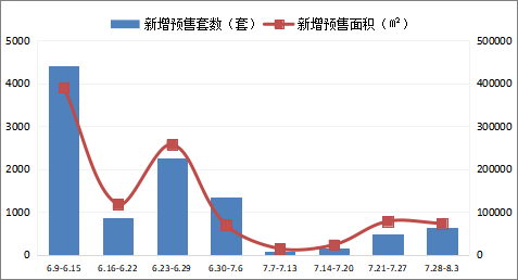 本周(2025.7.28-8.3)苏州市(不含县级市)4个项目领取预售许可证,新增预售634套,预售面积73032.99平方米。其中住宅类新增206套,新增预售面积32615.1平方米;其余为办公类新增预售。