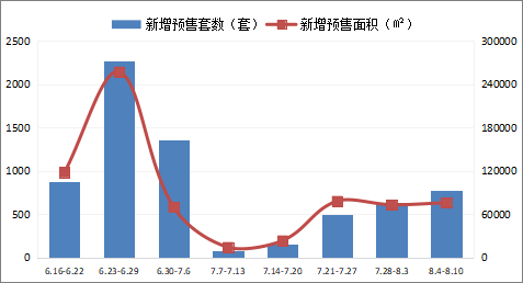 本周(2025.8.4-8.10)苏州市(不含县级市)6个项目领取预售许可证,新增预售780套,预售面积75744.24平方米。其中住宅类新增350套,新增预售面积62932.04平方米;其余为车库车位类新增预售。