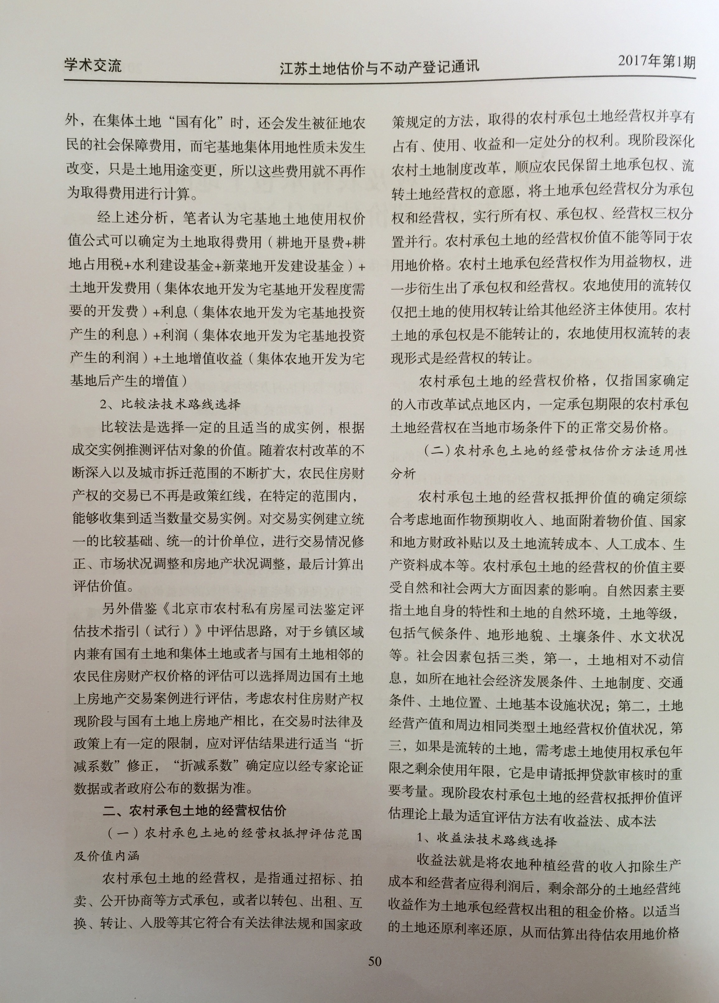 我公司张丽娜同志在江苏土地估价与不动产登记通讯上发表文章《农民住房财产权及农村承包土地的经营权抵押价值评估初探》。