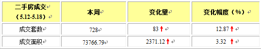5.12-5.18:本周二手房成交量较上周相比,稳中有升;但要想回到去年的成交量,已然是不现实的。