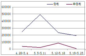 5.19-5.25:本周二手房成交量较上周相比,成交套数基本持平,成交面积涨幅较大。