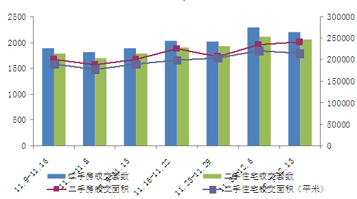 2015.12.7-12.13:本周二手房成交量2208套,较上周下降90套,跌幅3.92%;成交面积240690.8平方米,较上周环比上涨2.4%,成交量较上周略为下降。