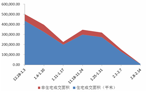 本周全市商品房较上周下降显著,虽然房贷政策不断放宽,但春节的来临给本周的商品房成交带来了不小的影响。