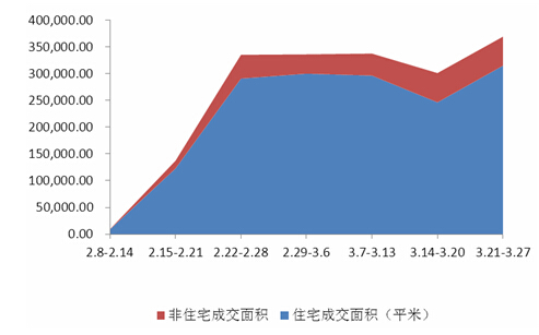 2016.3.21-3.27市商品房(一手)住宅签约量2459套(不含吴江区),环比上涨34.89%,签约面积314902.26平米,环比上涨27.8%。从统计的区域来讲,商品房签约量高新区本周成交1029套,较上周暴涨413套,成功打败吴中区夺得第一;吴中区成交907套,位居第二名;相城区成交784套,位居第三位;工业园区和姑苏区分别成交了371套、137套。成交物业类型中,商品住宅(一手)新签约量占一手房成交76.18%,依旧占据最大份额。