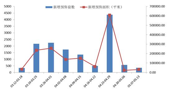 本周(05.07-05.13)共2个项目取得预售许可证,新增预售359套,其中住宅156套,非住宅176套,其它27套,新增预售面积共31815.44平方米,住宅19478.16平方米,非住宅11940.73平方米,其它396.55平方米。