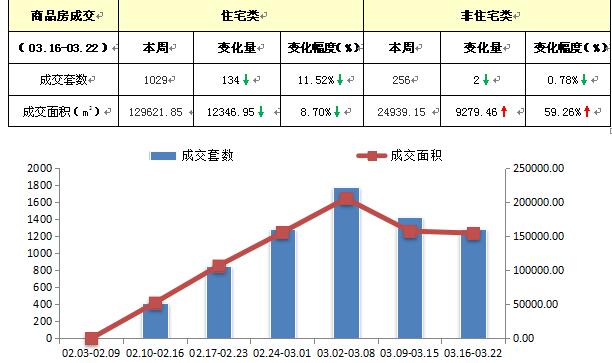 2020.03.16-2020.03.22周苏州市商品房住宅(一手)签约量1029套,环比下跌11.52%,签约面积129621.85平方米,环比下跌8.70%。本周,商品房签约总量1285套,环比下跌9.57%,签约总面积154561.00平方米,环比下跌1.95%。其中,高新区住宅成交面积位居本周各区住宅成交面积的首位,成交面积为37959.15平方米,占商品房签约总面积的24.56%。