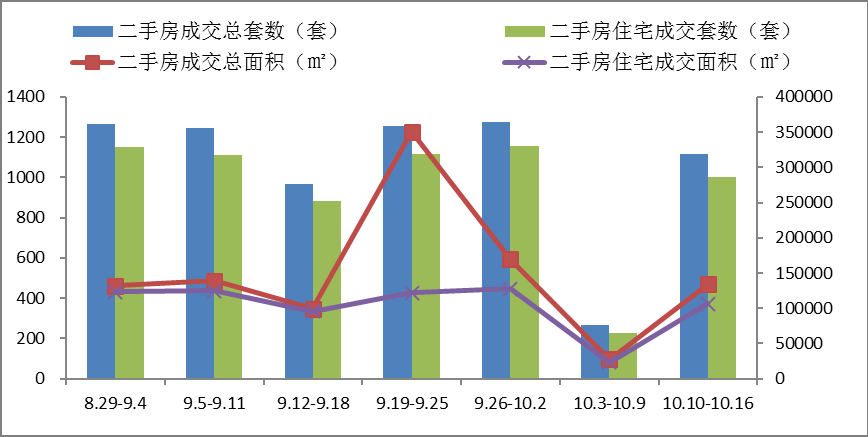 2022.10.10-10.16周苏州市二手房共计成交1117套,较上周增加852套,环比上涨321.51%;成交总面积134233.41㎡,较上周增加106966.49㎡,环比上涨392.29%。本周住宅成交量1004套,较上周增加776套,环比上涨340.35%;成交面积106288.46㎡,较上周增加82589.85㎡,环比上涨348.50%。其中,住宅总成交面积106288.46㎡,占成交总面积的79.18%。